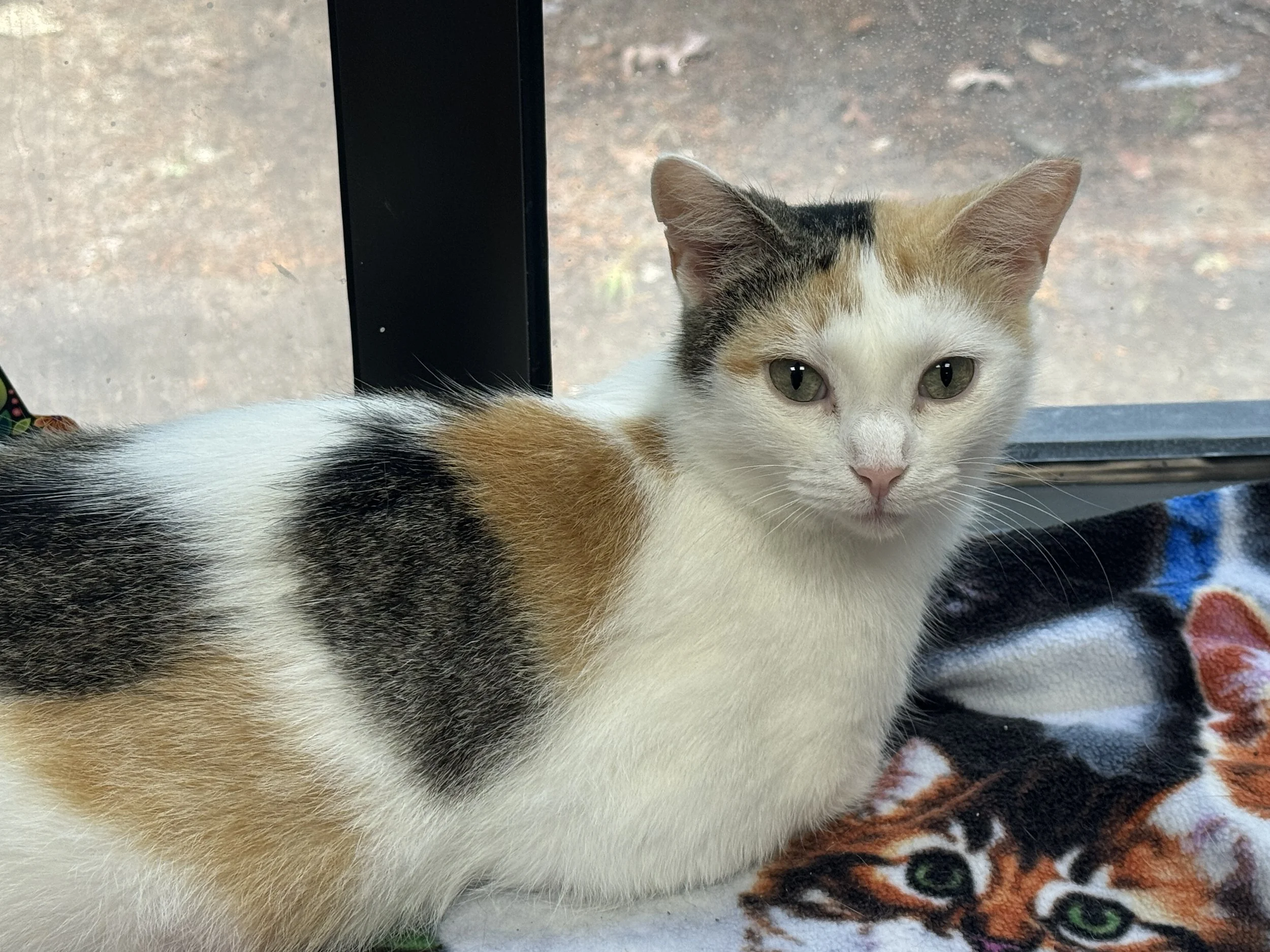 Lucy is a quiet, observant cat who spent her early days outside, often spotted peeking through the café windows at the cats inside. Now that she’s indoors, she’s still getting used to her new life but is making steady progress. She enjoys pets, especially when approached slowly and respectfully, and she’ll let you know when she’s comfortable. Lucy is photogenic, loves Churu treats, and enjoys both playing with other cats and entertaining herself with toys. She’ll do best in a patient home that understands her pace and is ready to give her the space she needs to fully settle in.